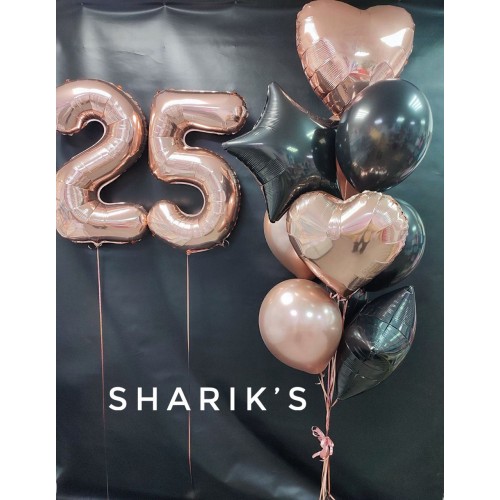 Набор шаров «Чёрное золото» – стильный и эффектный комплект с фольгированными и латексными шарами в чёрно-золотой гамме. Отлично подойдёт для дня рождения, юбилея или любого статусного торжества.