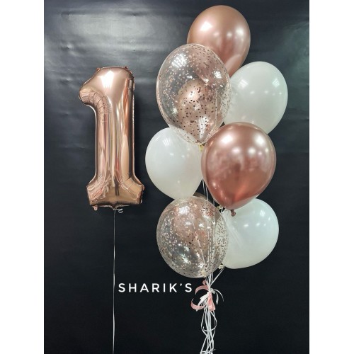 Набір куль «Золото з рум’янцем» — елегантна та святкова композиція повітряних куль у золотих і ніжно-рожевих відтінках. Підійде для дня народження, весілля, ювілею чи романтичної події, створюючи атмосферу розкоші та ніжності.