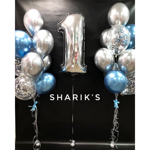 Набір куль «Аргентум» — витончена композиція у сріблястих відтінках. Ідеально пасує для дня народження, весілля, ювілею чи корпоративного заходу, надаючи урочистості блиску та шарму.
