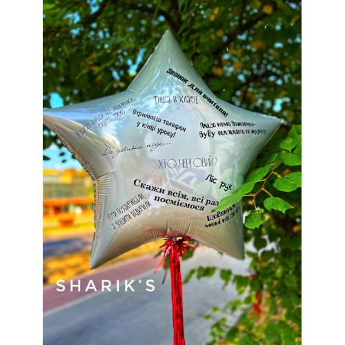 Куля-гігант «Шкільні теги» — велика стильна куля з тематичним оформленням, що ідеально підійде для останнього дзвоника чи випускного. Вона стане яскравим акцентом свята та подарує незабутні емоції випускникам.